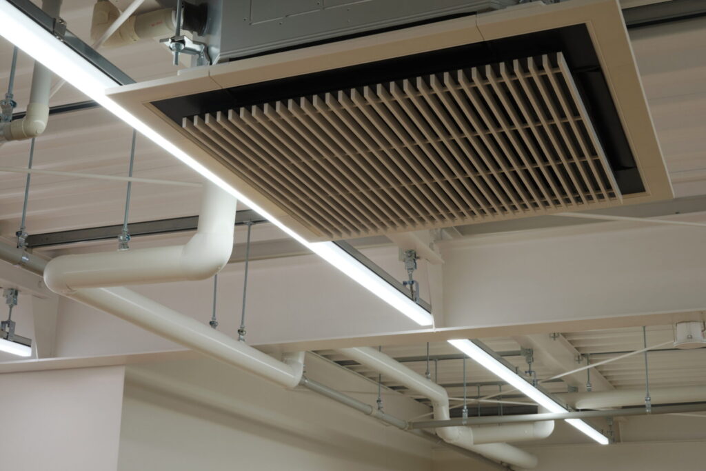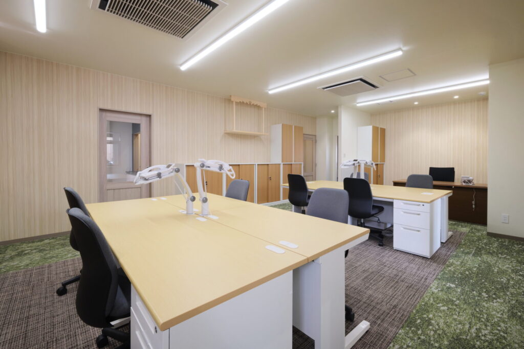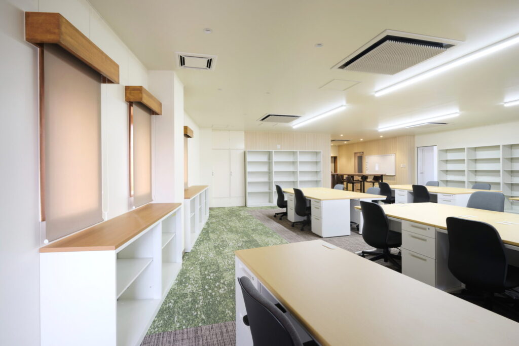 オフィス空間にカフェコーナーを計画。ひと息つきながら会話が弾むワーキングコミュニケーションを取り入れています。