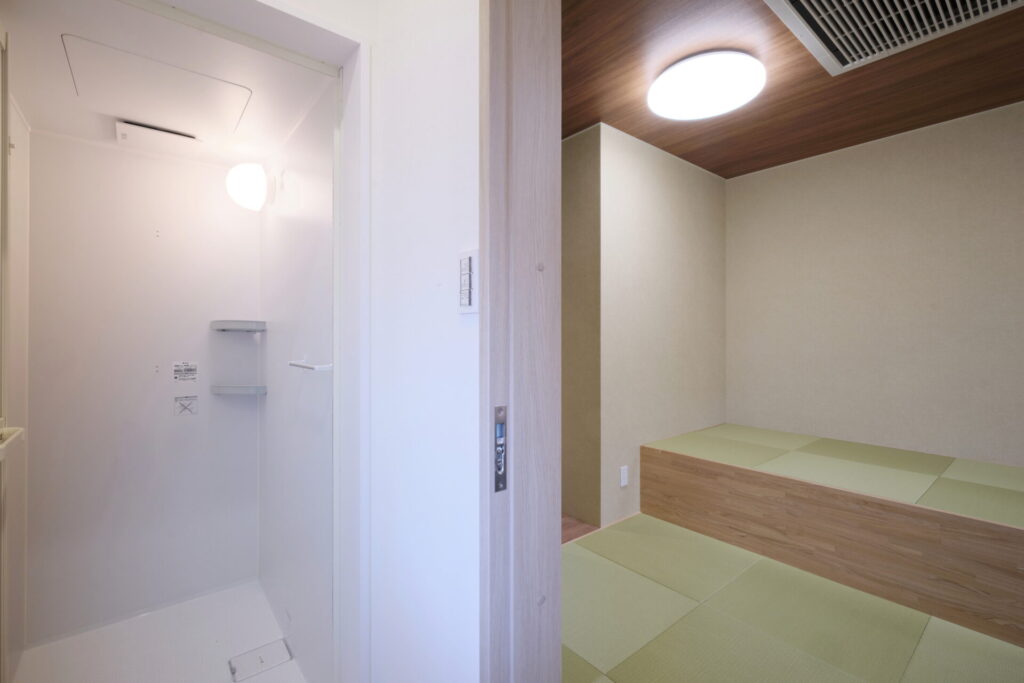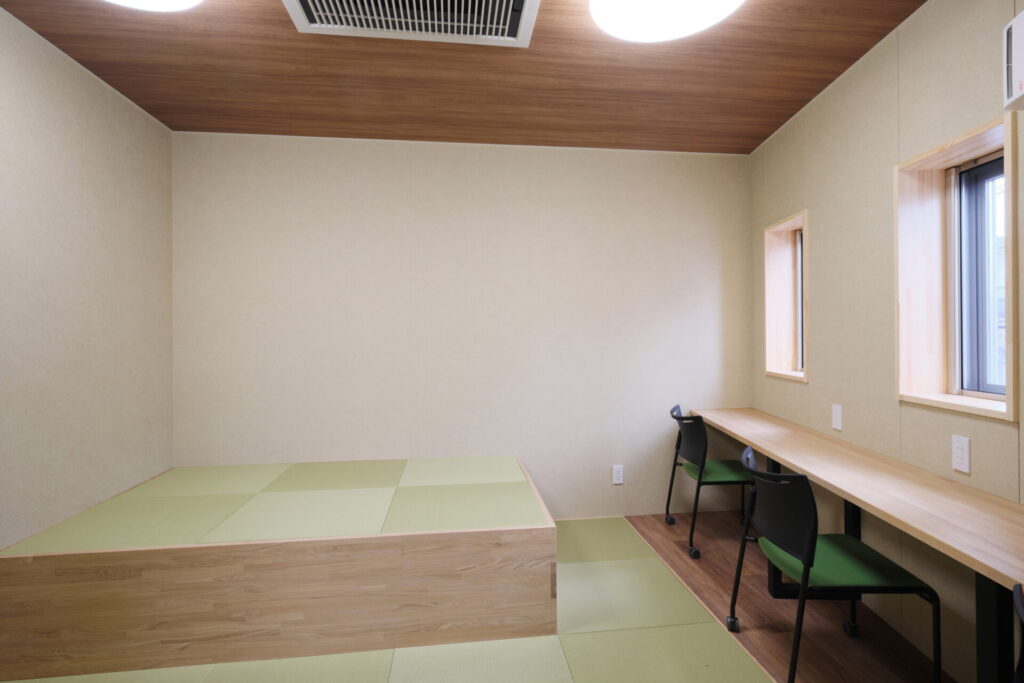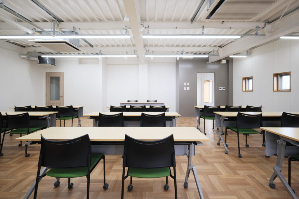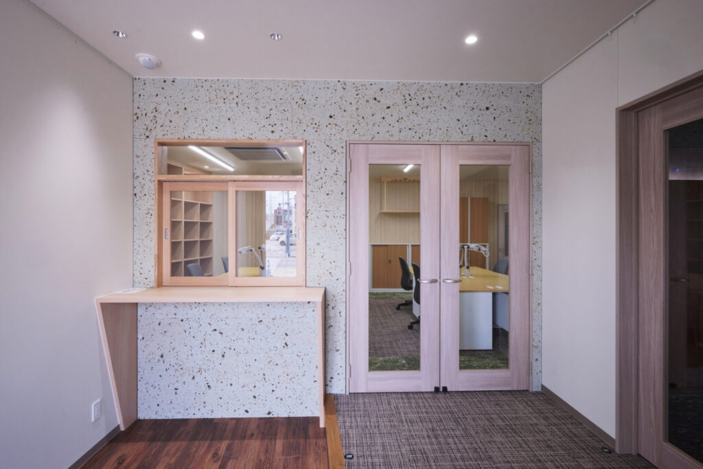 堅苦しい会議室からの脱却を目指し、親しみのある床仕上げとしています。懐かしさを感じ、清潔感のある空間で積極的な議論を促すデザインとしています。